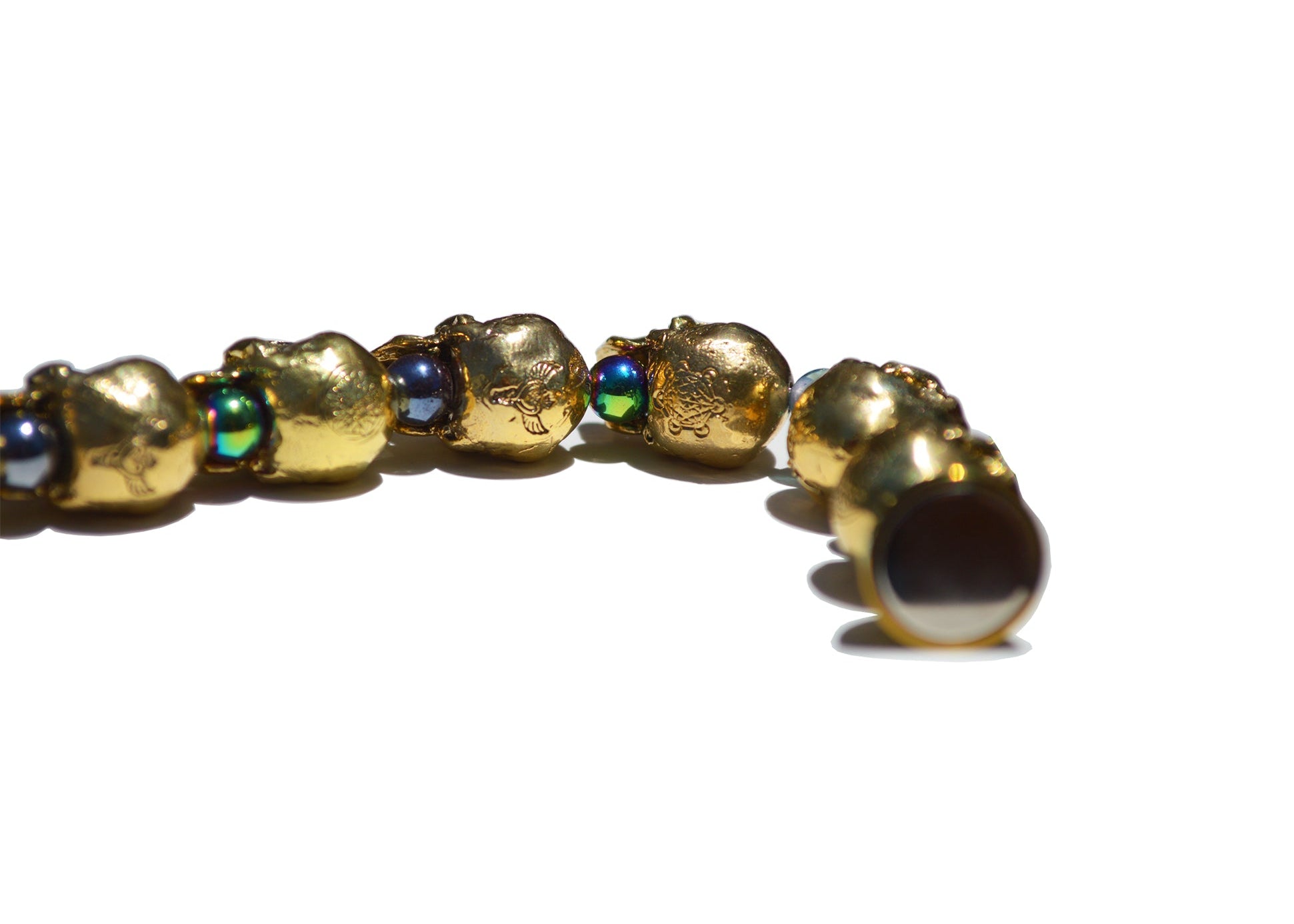 Step into the angelic realm of ascension and empowerment. The Seraphim One has been in the process of creation for well over a decade. Handmade Alchemical Gold alloy skulls have powerful ascension sigils on the back of them and precious gemstones and crystals inside of them to form this powerful Crystal Current energy tool which was designed to assist the wearer to get to brand new heights on their ascension and awakening journey. One of the sigils on the back of some of the skulls has been lost to history and was unearthed to be returned to humanity. It is known as the Sandalphon's Cube and he is the brother to Archangel Metatron.